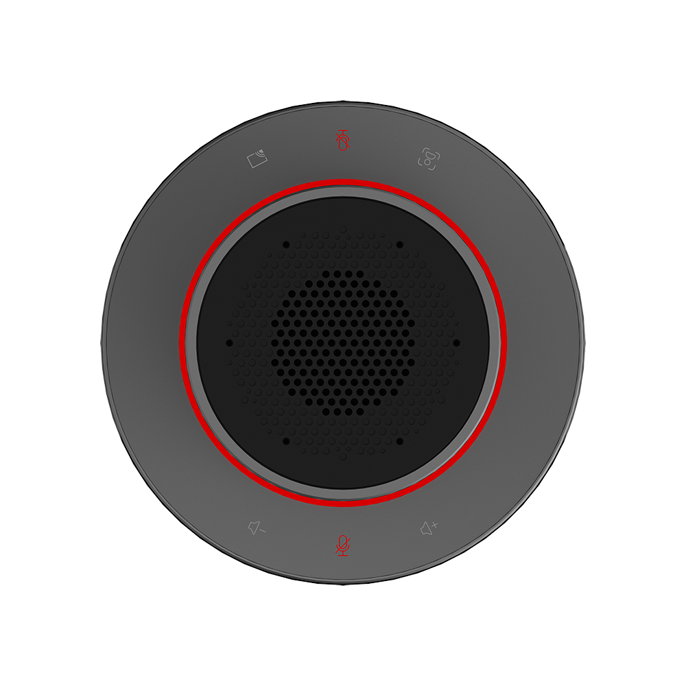 - Zintegrowane audio: Jednostka posiada 6 mikrofonów w układzie MEMS o zasięgu czystego odbioru wynoszącym 3 metry. Wbudowany kompaktowy głośnik pełnozakresowy w połączeniu ze specjalnie zaprojektowaną komorą rezonansową umożliwia wielokierunkowe wzmocnienie dźwięku, skutecznie obejmujące całą salę konferencyjną